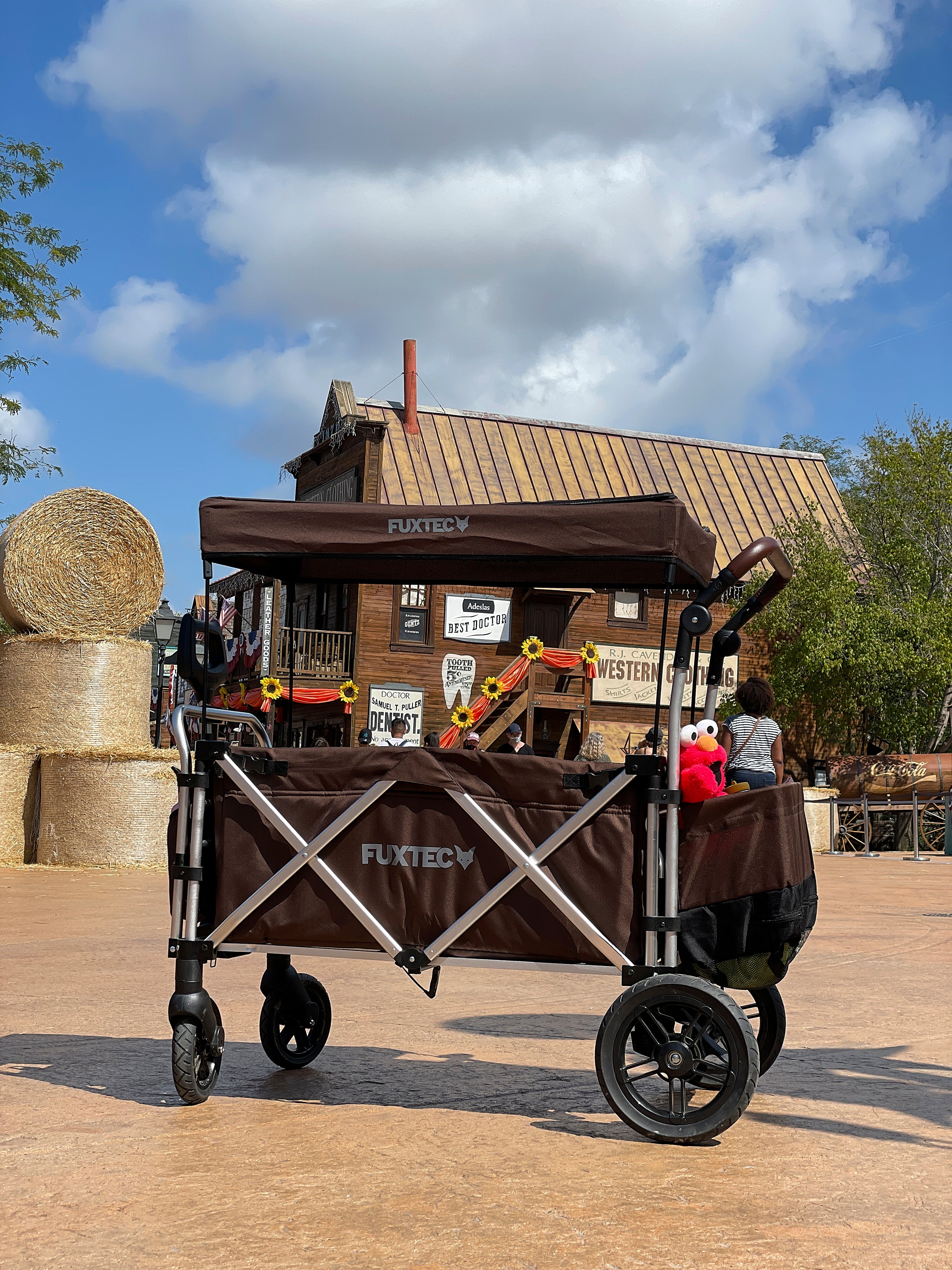 - the FX-CTL900 includes a classic pull bar (which makes this stroller a real handcart) and a push handle with a visually striking artificial leather cover.